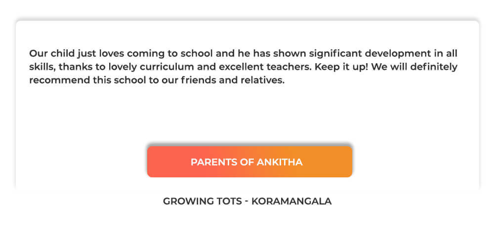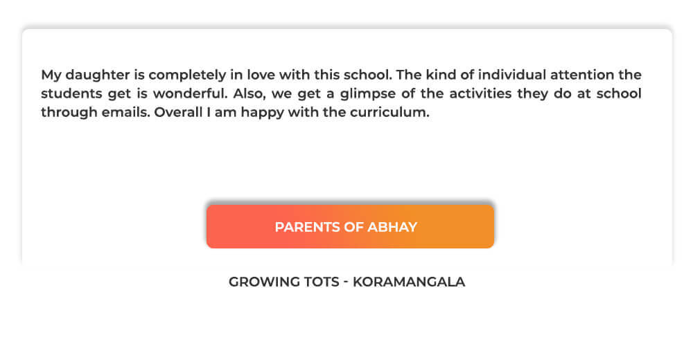 ReserveWe prepare them for primary school learning. We train them to do all their jobs independently, learn more writing and reading, more experiments, more exposure to practical learning. Apart from this, they are introduced to the academic curriculum as prescribed by CBSE / ICSE boards.With the emphasis on Multiple Intelligence, we not only concentrate on academics in Junior KG but also encourage the child to explore the in-born skills by exposing them to self-learning, through creative endeavors. The academic curriculum is at par with the CBSE and ICSE syllabus followed by mainstream schools.